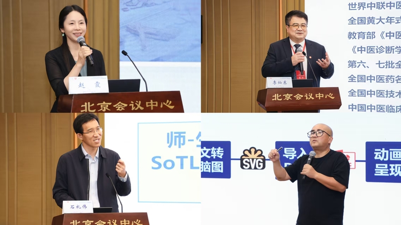 分论坛第一阶段,中国矿业大学教务部部长石礼伟、北京大学信息科学技术学院教授陈江、福建中医药大学原校长李灿东、南京中医药大学副校长赵霞分别以《智慧教育时代教学学术研究范式转型与课程内涵建设》《AI赋能教育教学》《学高为师,身正为范——如何成为一名合格的大学教师》《“新医科”背景下中医药高等教育教师发展体系创新研究》为题作报告。