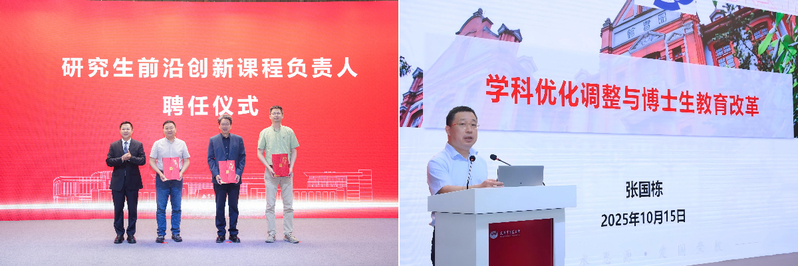 会上,聘任南京大学戴新宇,南京医科大学汪强虎、陈峰为我校研究生前沿创新课程负责人。上海交通大学研究生院副院长张国栋作“学科优化调整与博士生教育改革”专题报告。