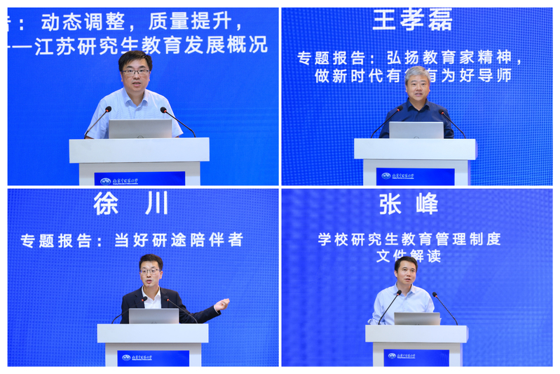 当天下午,学校举办2025年研究生导师培训会。校党委常委、副校长孙秀兰出席会议并致辞。会议邀请江苏省教育厅研究生教育处处长金科、南京大学研究生院院长王孝磊教授、南京航空航天大学党委常委、宣传部部长徐川教授分别以《动态调整、质量提升、学科赋能》《弘扬教育家精神,做新时代有德有为好导师》《当好研途陪伴者》为题作培训报告。研究生院院长张峰对学校研究生教育与管理相关制度进行解读。
