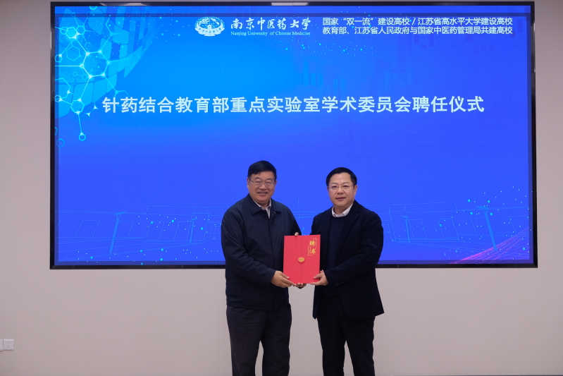 程海波在致辞中指出,学校始终秉承首任校长承淡安等针灸大家精神,努力“以中医为根据,用科学作化身”,面向针药结合前沿和国家经济、社会发展的重大需求,开展创新性研究。他表示,近年来实验室在各级领导与专家的持续关心与支持下,在高水平科技创新、高质量人才培养和高层次学术交流等方面取得了一系列重要进展,为学校针灸学科的高质量发展提供了坚实支撑。程海波对实验室新一届学术委员会的成立表示热烈祝贺,并向各位委员长期以来对实验室建设所倾注的关心与支持致以诚挚感谢。期待在新一届学术委员会的引领下,实验室能够聚力攻坚、再创佳绩,为推动针灸学科高质量发展作出更大贡献。会上,程海波为与会委员颁发了聘书。