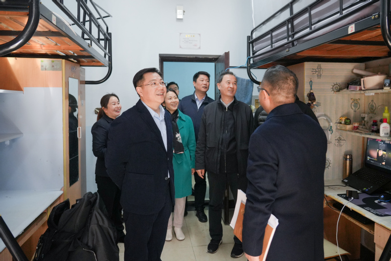 在学生宿舍,程海波与学生亲切交流学习生活情况,重点查看了宿舍用电情况,检查是否存在使用违规电器、私拉乱接电线等安全隐患,提醒同学们提高安全意识。