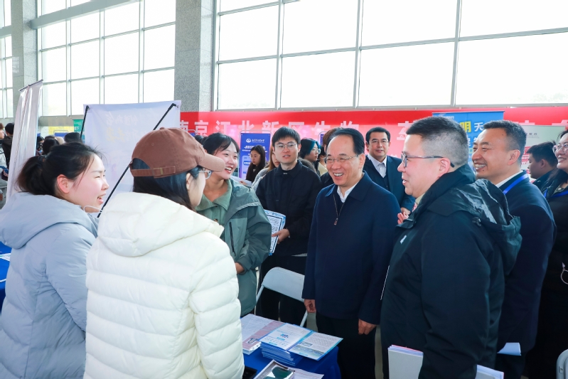 3月20日,我校2026届毕业生校友企业专场招聘会在仙林校区大学生活动中心北厅举行。本场招聘会由校长办公室(校友会秘书处)和学生工作部共同举办,以“校友引路,职通未来”为主题,邀请60家校友企业“回家”,为学弟学妹提供就业岗位类别214个,人才需求2600个。活动吸引千余名毕业生参加,投递简历五千余份,现场初步达成就业意向280人次。活动由江苏人社“就在江苏”现场直播,线上观看2.8万人次,累计曝光4.8万次。